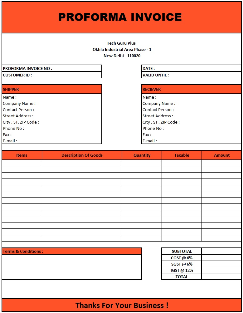 Proforma Invoice In Consignment Download Proforma Invoice In Excel